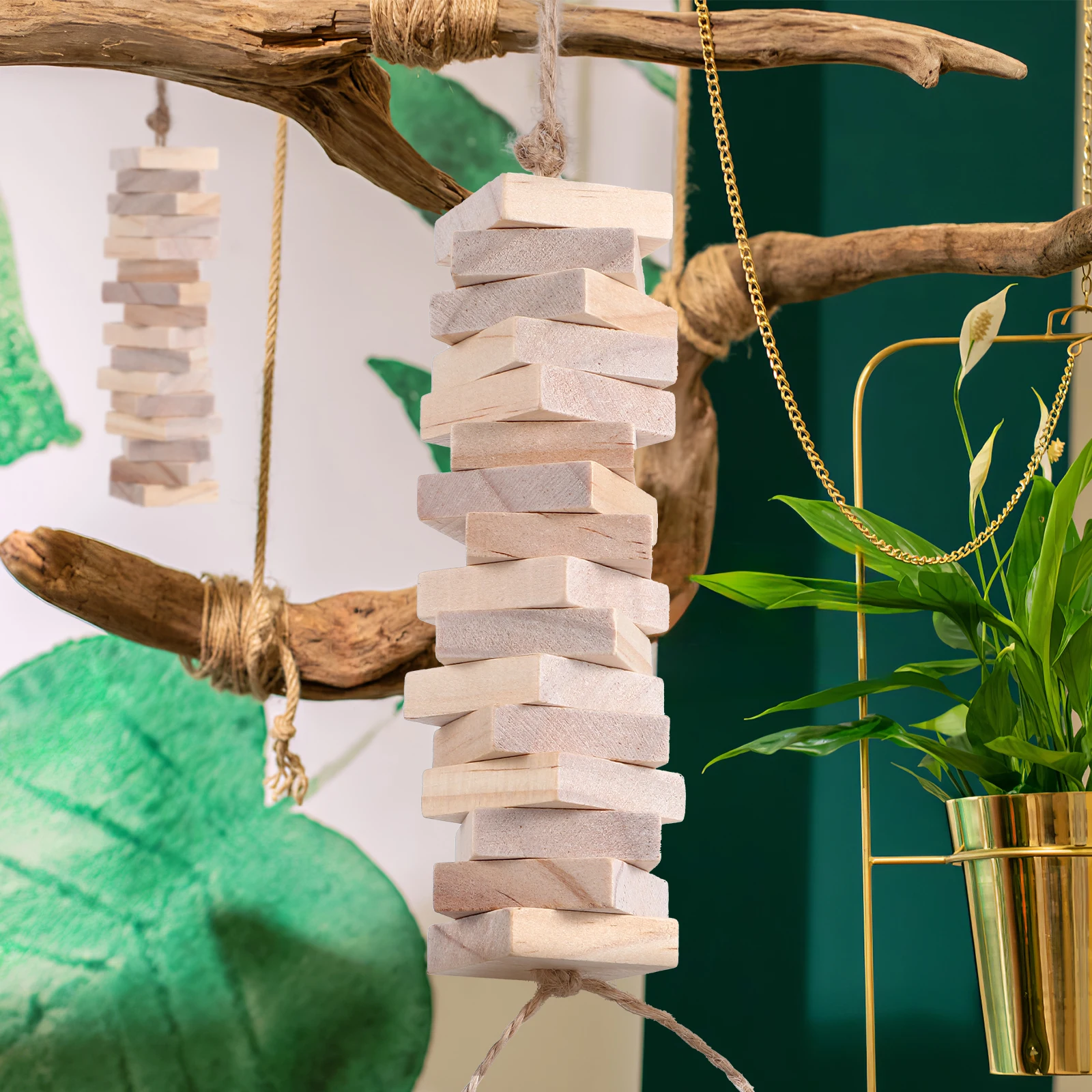 - Hang blocks individually or combine multiple ones to create a fun “chewing zone” for your parrot.