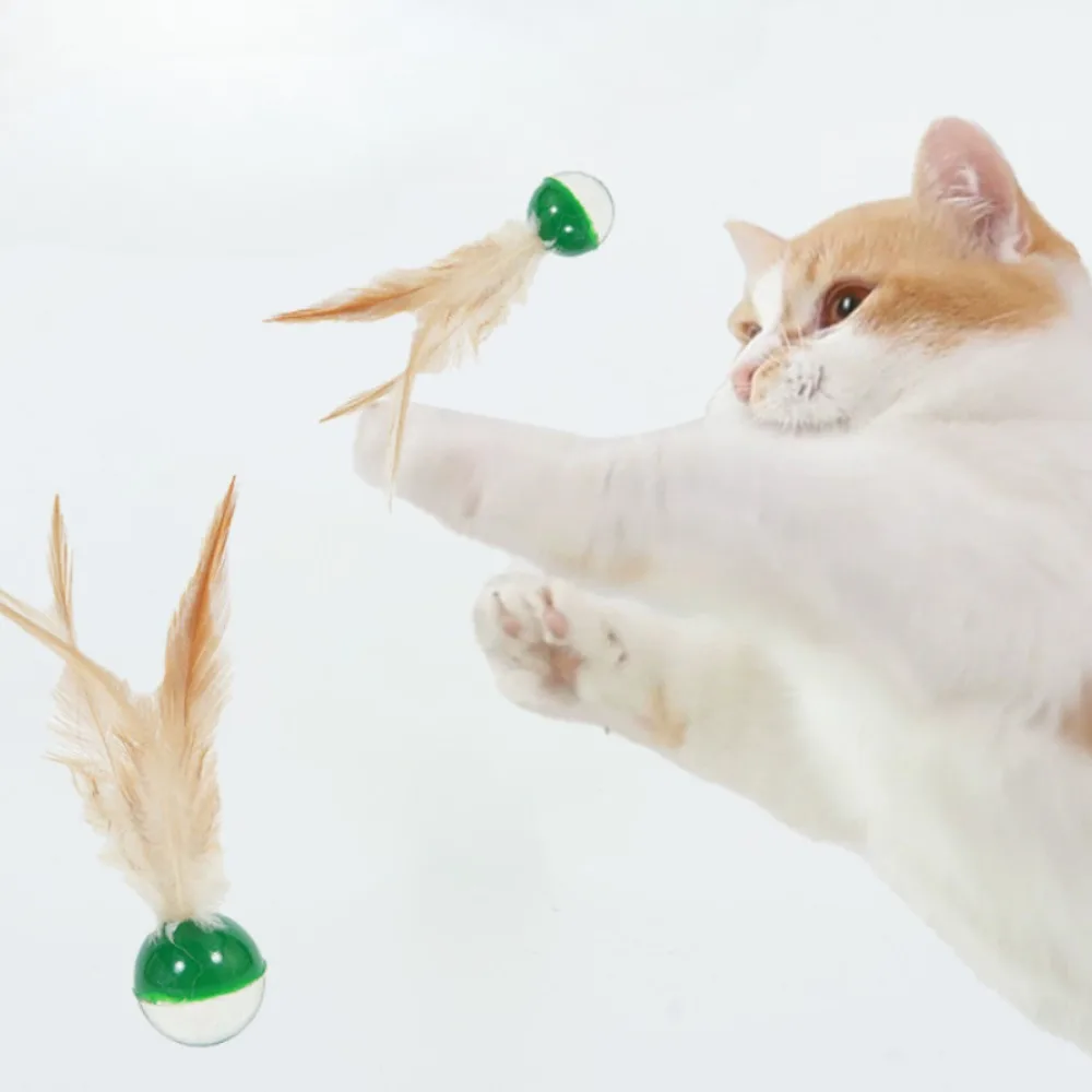 3pcs Cat Elastic Ball Toy Kitten Bouncing Ball with Feathers itten Funny Chasing Game Cat Feather Toys Cat Accessories