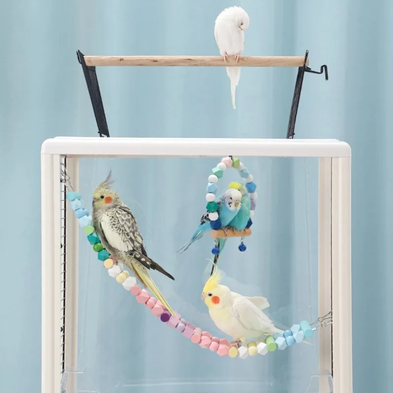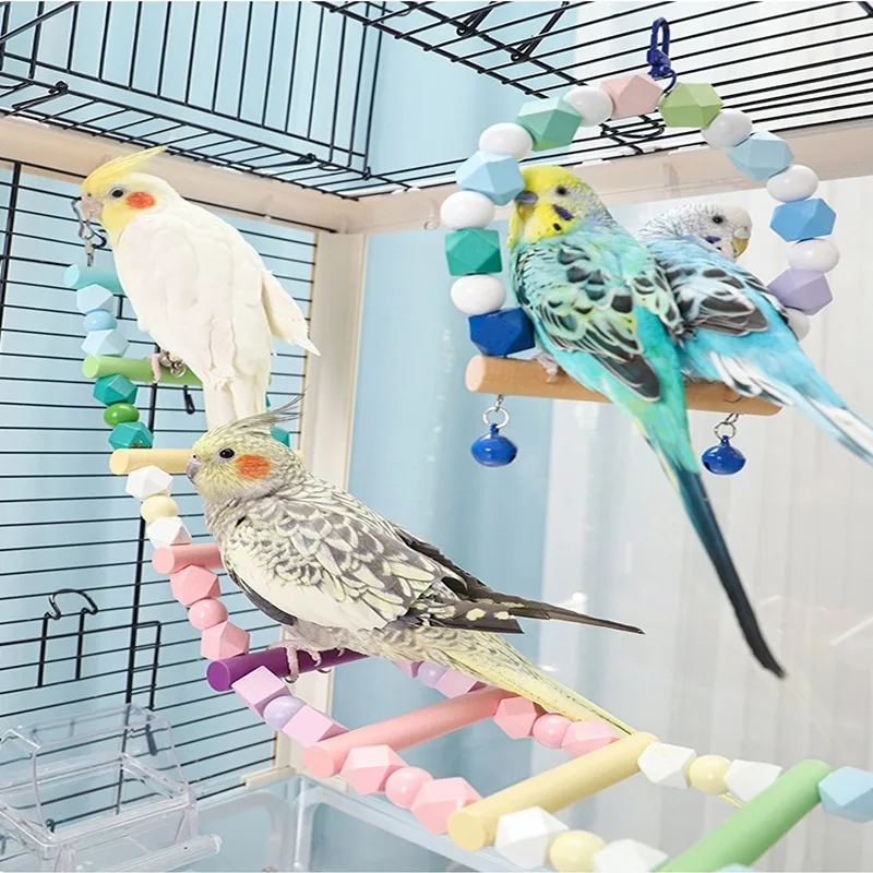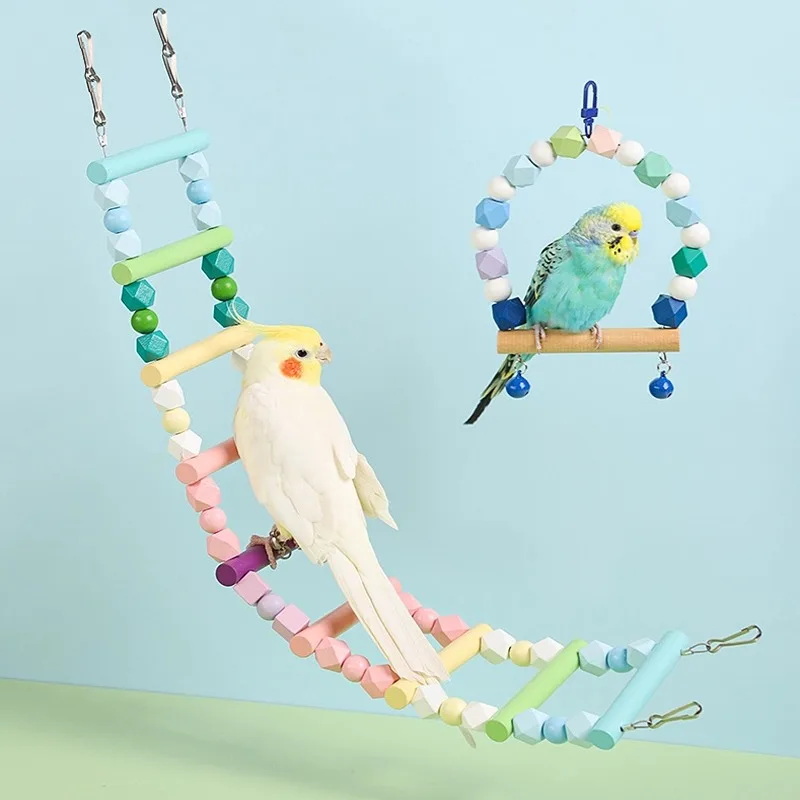 Bird Parrot Toys Ladders Swing Chewing Toys Hanging Pet Bird Cage Accessories Hammock Swing Toy for Small Parakeets