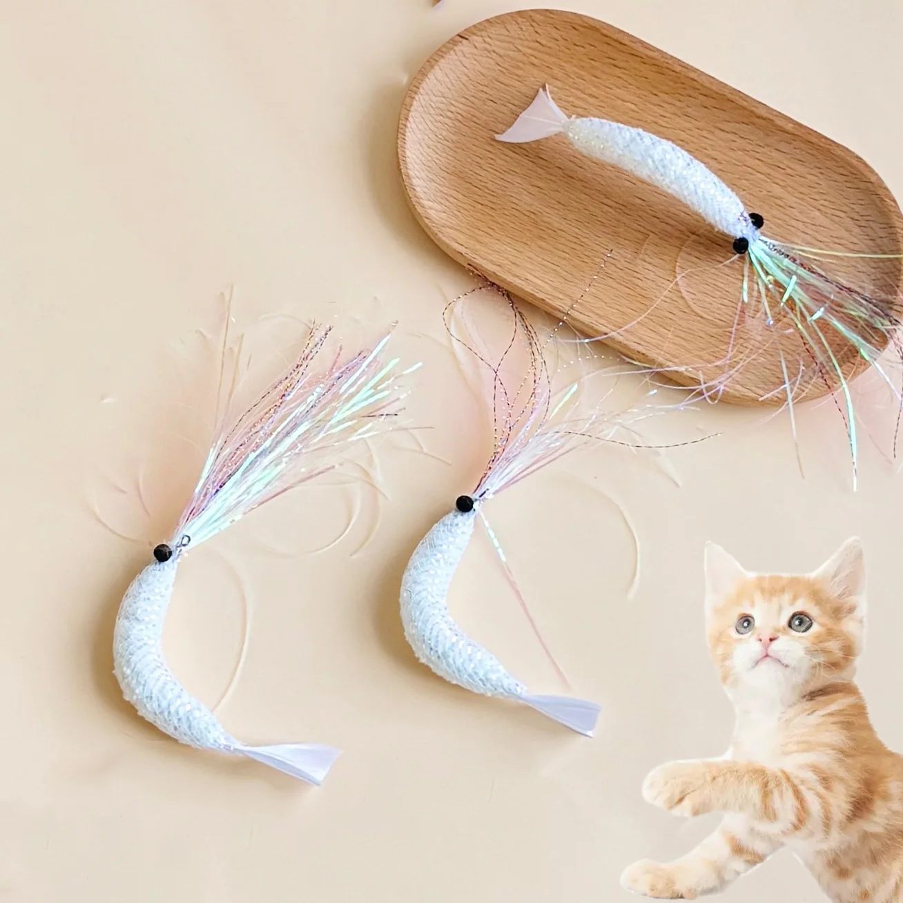 Cat Teaser Toy Feather Bell Interactive Kitten Toy Cute Prawn Modeling Detachable Cat Toy Cat Accessories
