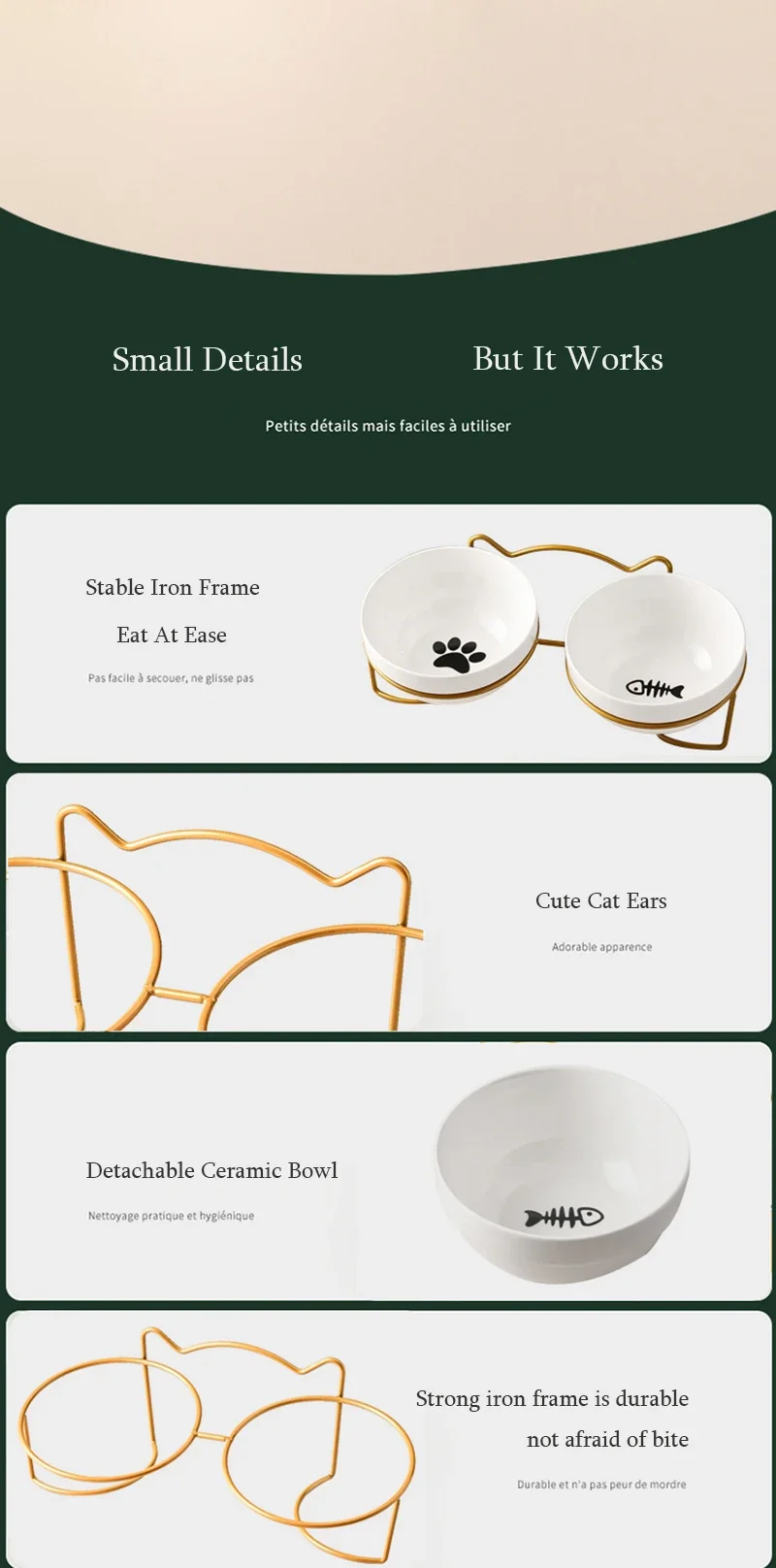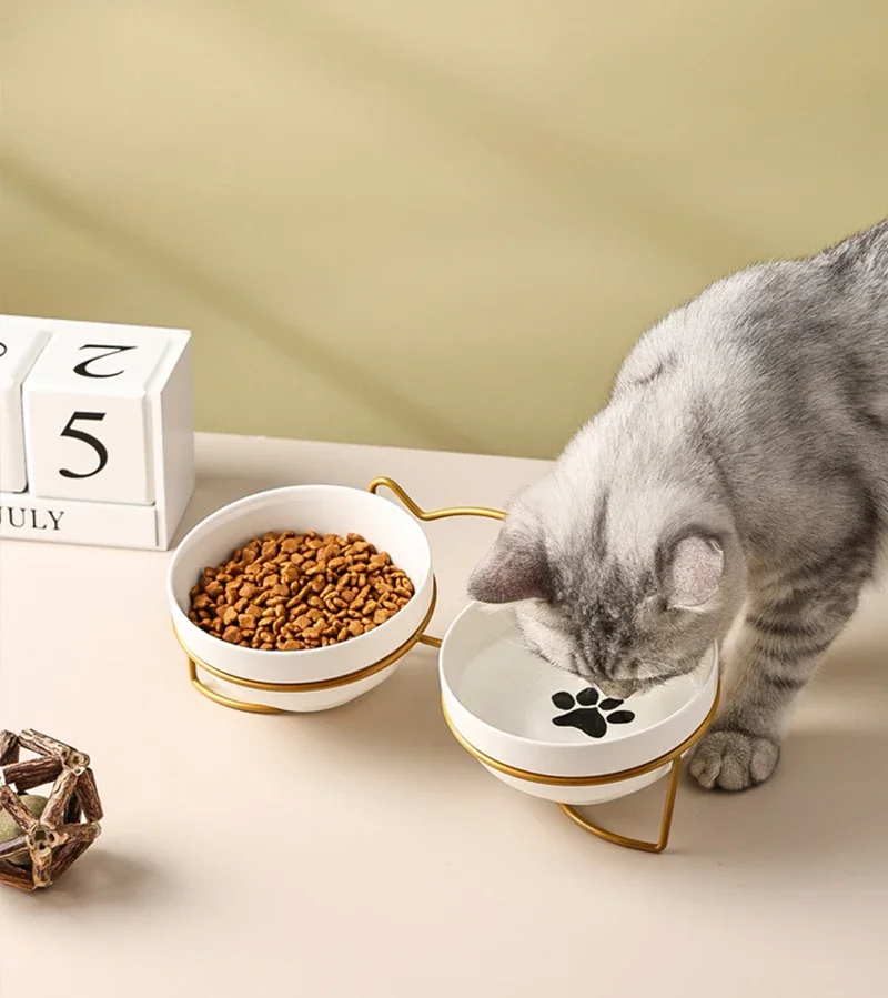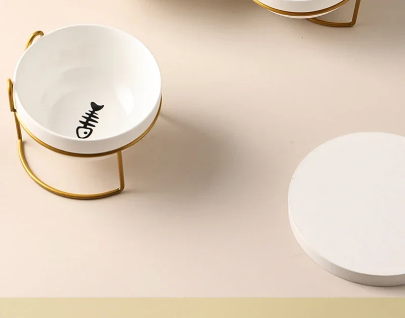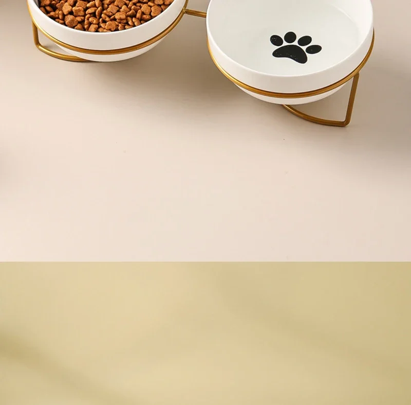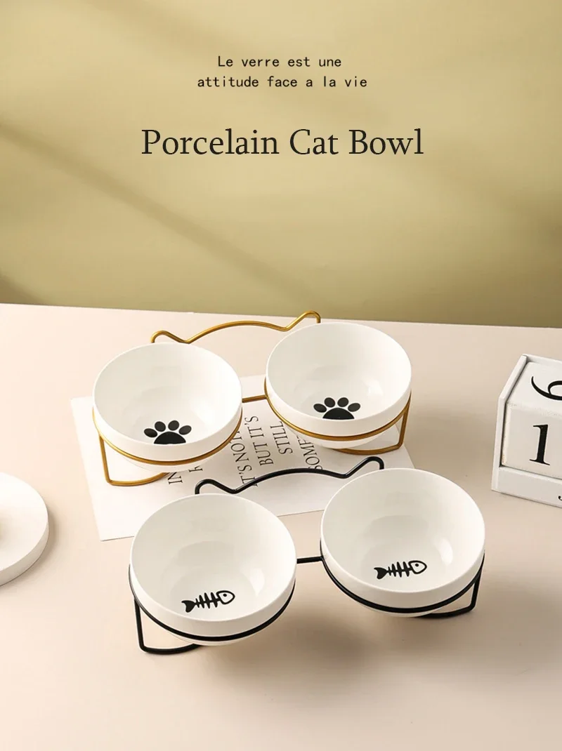 Ceramic Bowl Kitten Puppy Ceramic Bowl 500ML Pet Water Feeder Cat Food Feeding Dish Dispenser with Raised Stand Cat Accessories