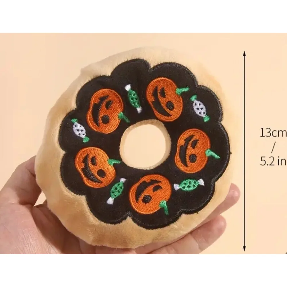Halloween Dog Toys Pumpkin Ghost Funny Plush Donut Squeaky Pet Toy for Boredom Unstuffed Chew Toy Soft Plush Puppy Toy