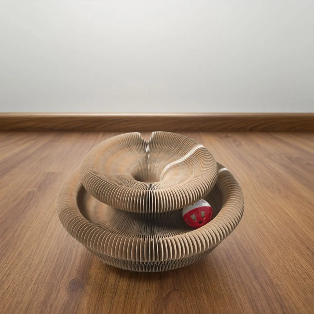 Magic Organ Cat Scratching Board Cat Grinding Claw Scratching Board Foldable Round Corrugated Cats Interactive Toys Pet Supplies