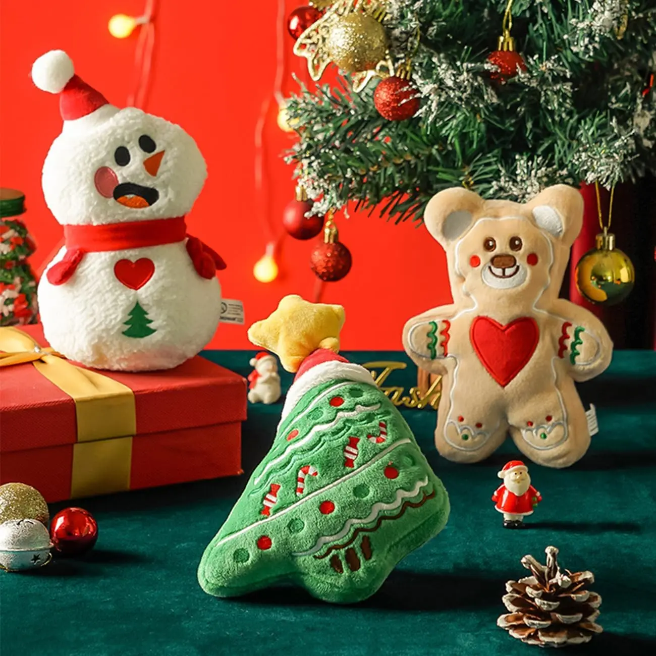 Squeaky Dog Toys for Puppy Small Medium Dogs Cute Dog Chew Toys Pack for Puppies Teething for Dog and Cat Chritmas Gingerbread
