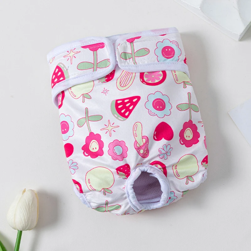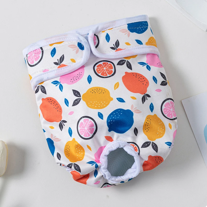 Washable Dog Diapers Female Cute Fruits Print Adjustable Puppy Shorts Dog Clothes Dog Physiological Pants Pet Dog Accessories