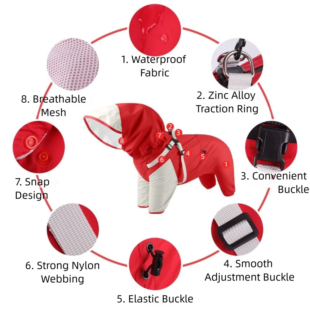 Waterproof Pet Dog Raincoat Four Legged Clothing Lightweight Dog Rain Jacket with Hat S-XXL Pet Rainwear Dog Accessories